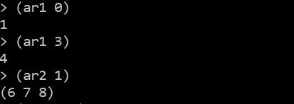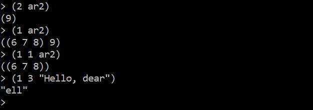 A natural extension of "implicit indexing" that we have seen so far is "implicit slicing". Slicing comes into picture when we use an integer in the "functor" position.
