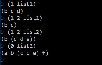 The first expression returns a sublist starting from the second element of the given list. Another integer argument, if provided, specifies the number elements to extract from the starting position.